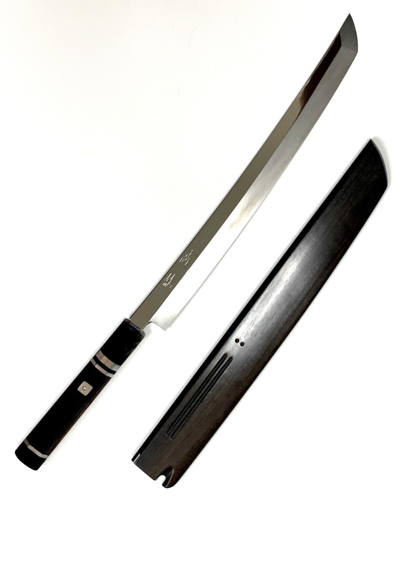Shogo Yamatsuka(山塚尚剛) is a traditional craftsman based in Sakai, Osaka, who is highly skilled in the honyaki technique, using materials such as Silver No.3 Steel to craft high-quality knives. Honyaki is a traditional technique where a single, solid piece of steel is used for heat treatment, typically quenched in oil rather than water. This is because the steel is extremely hard and would crack if cooled in water. Honyaki knives are renowned for their high hardness and the reduced friction they offer when cutting, allowing for clean cuts that minimize damage to the cells of the food. Due to the high level of expertise required, honyaki knives are considered high-end and are highly valued.